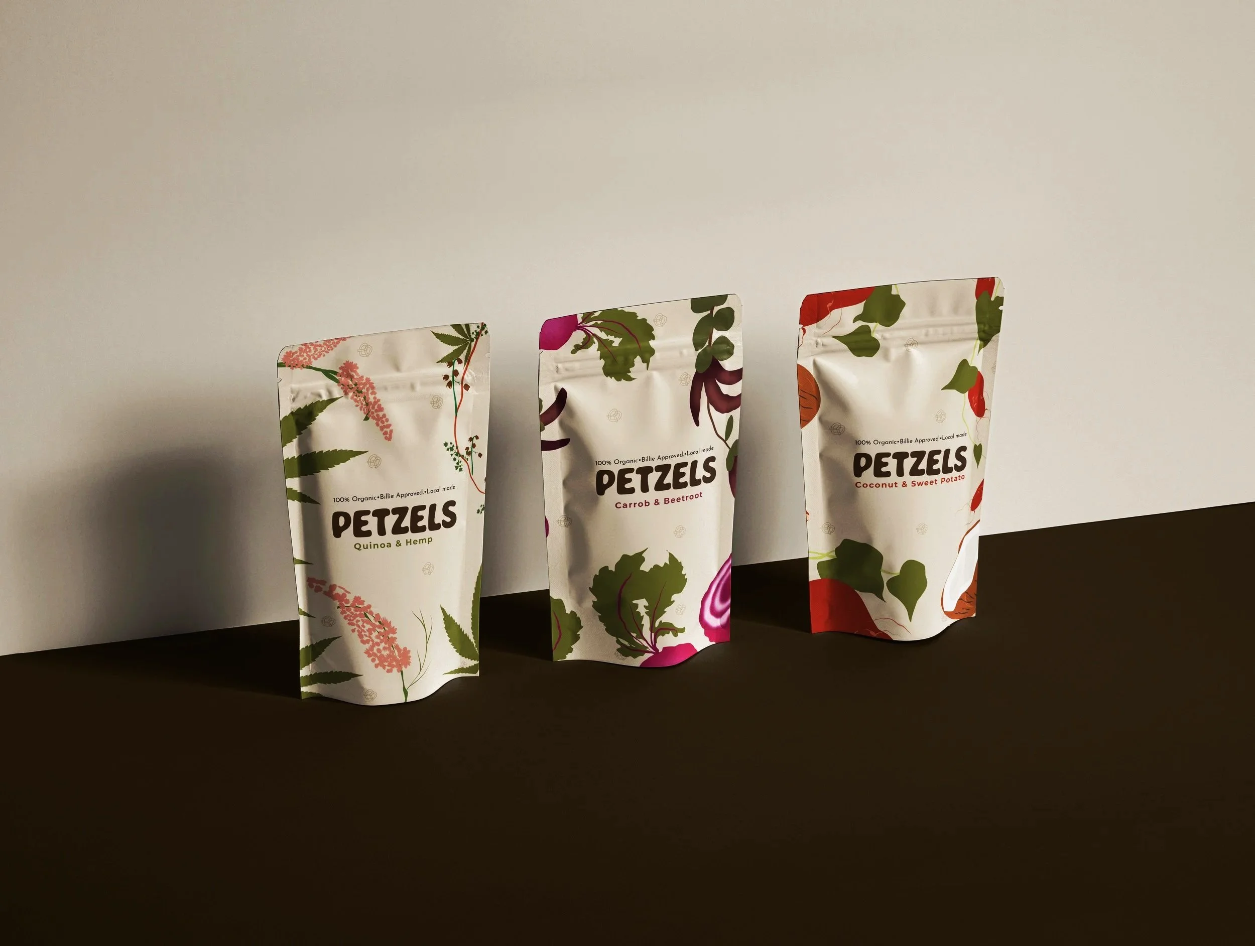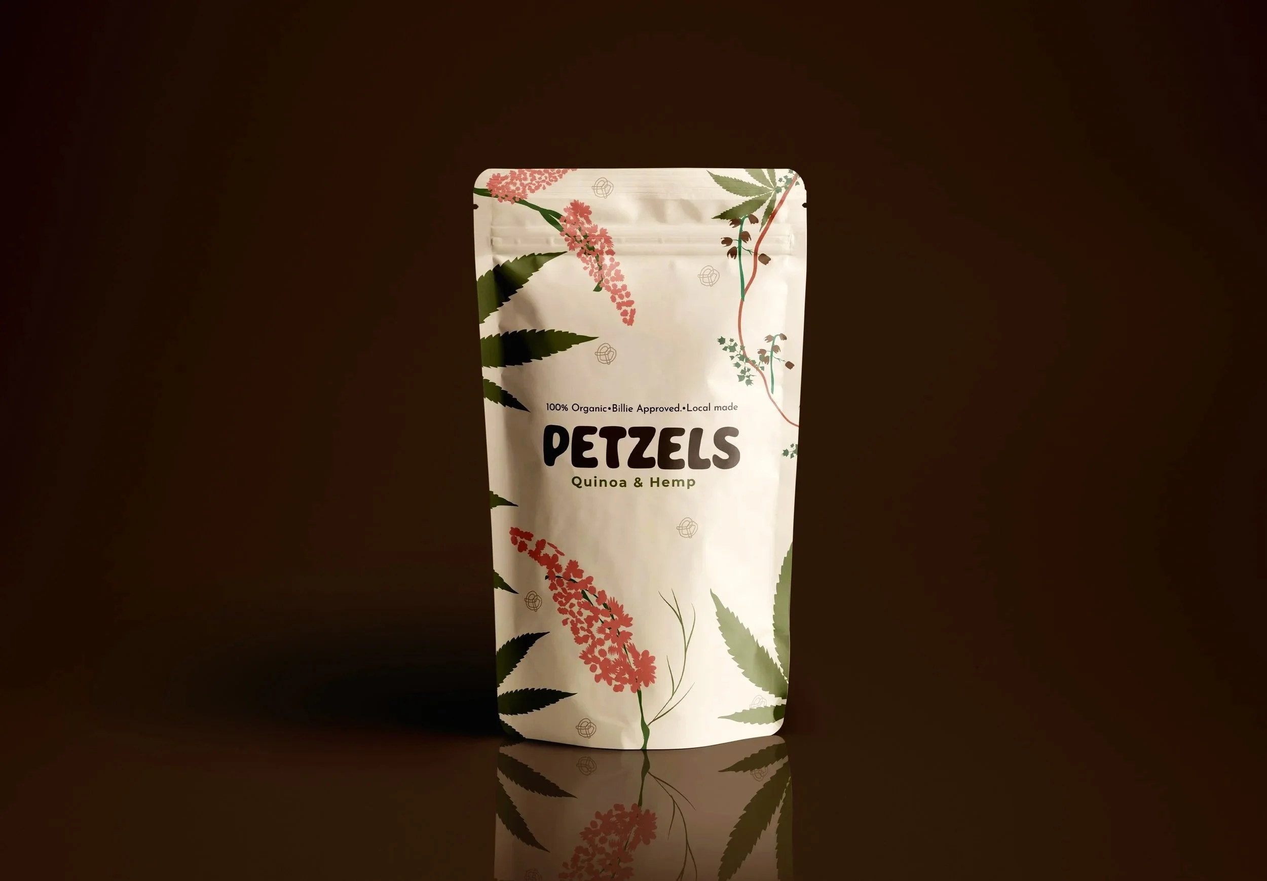 Inspired by the Farm-to-Bowl movement, Petzels turns organic, human-grade, locally-sourced ingredients into treats dogs actually love.The brand's visual identity reflects this philosophy through hand-drawn illustrations and warm, organic design that connects directly to the ingredients' journey from local farms to dogs' bowls.